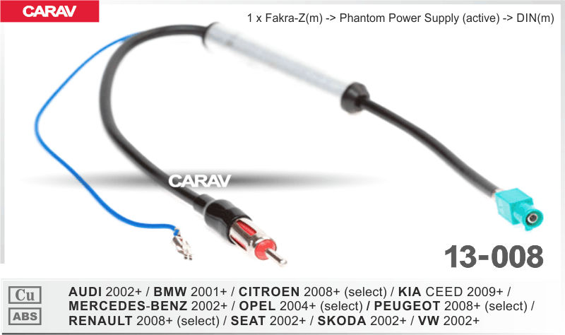 —CARAV 13-008 переходник для подключения штатной антенны к магнитоле AUDI - MERCEDES-BENZ - SEAT - SKODA - VW 2002+ (all models) / BMW 2001+