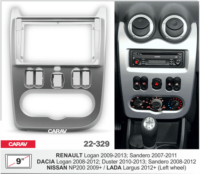 —CARAV 22-329 (9 дюйм. монтажная рамка для а/м RENAULT Logan 09-13; Sandero 07-11 / NISSAN NP200 2009+ / LADA Largus 2012+ (руль слева)